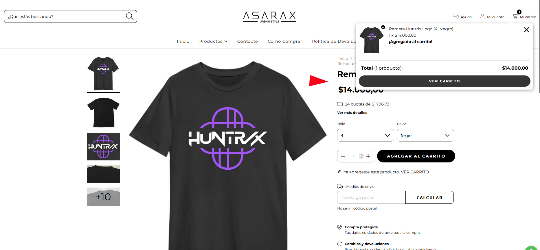 - Podés seguir agregando otros productos al carrito o hacer clic en ""Ver compra""