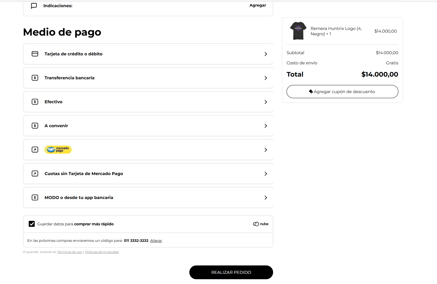 - Elegí el medio de pago